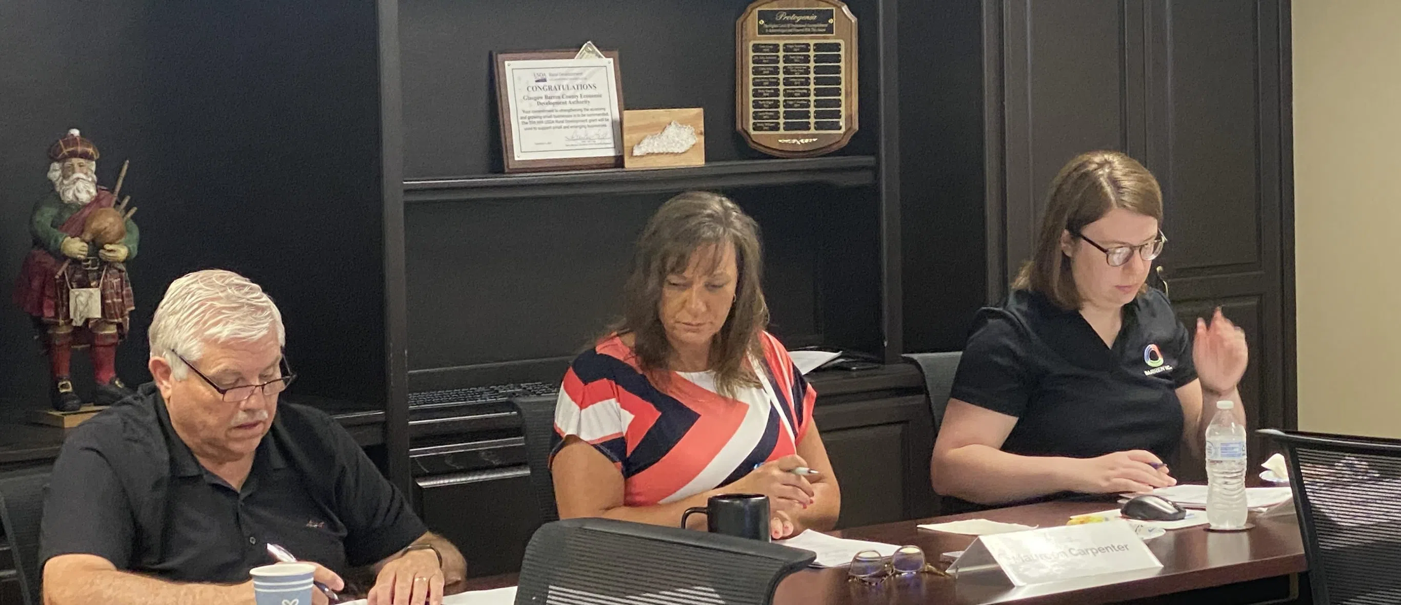 The authority met in its office in Glasgow City Hall. The meeting was attended by numerous Barren County business leaders, such as Larry Glass, as well as other influential people in the county including Glasgow Mayor Henry Royse, Glasgow City Council member Terry Bunnell, Barren County Judge Executive Jamie Bewley Byrd and Cave City Mayor Dwayne Hatcher.