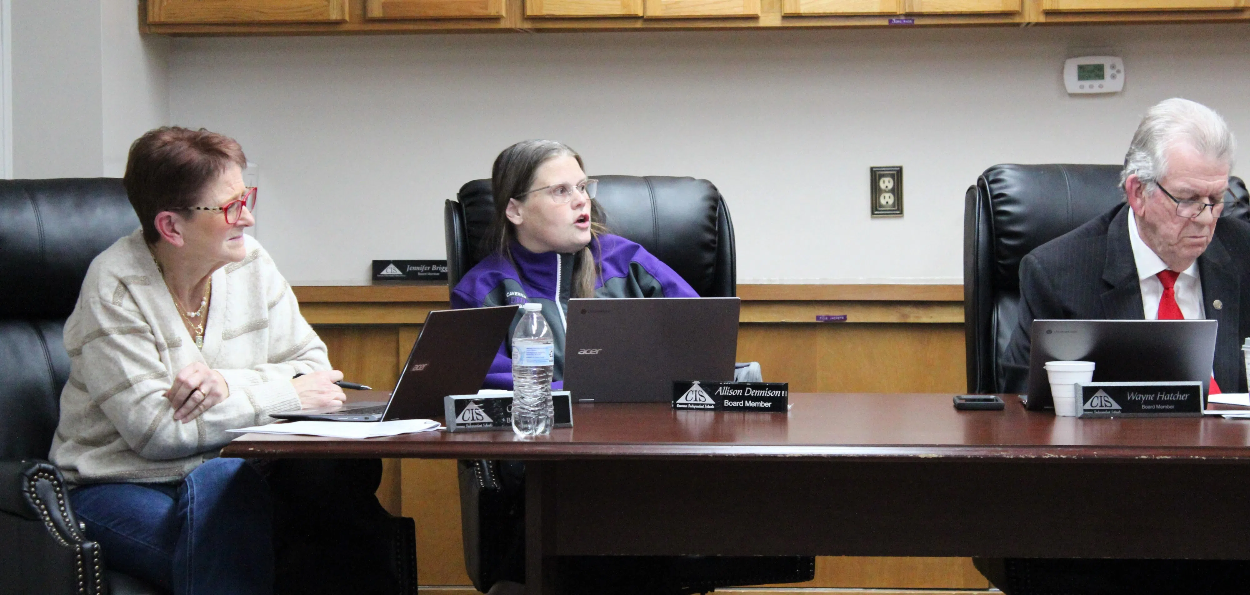 Caverna Board of Education member Allison Dennison asks about a committee assignment during the regular monthly meeting in December. Gage Wilson/For Glasgow News 1