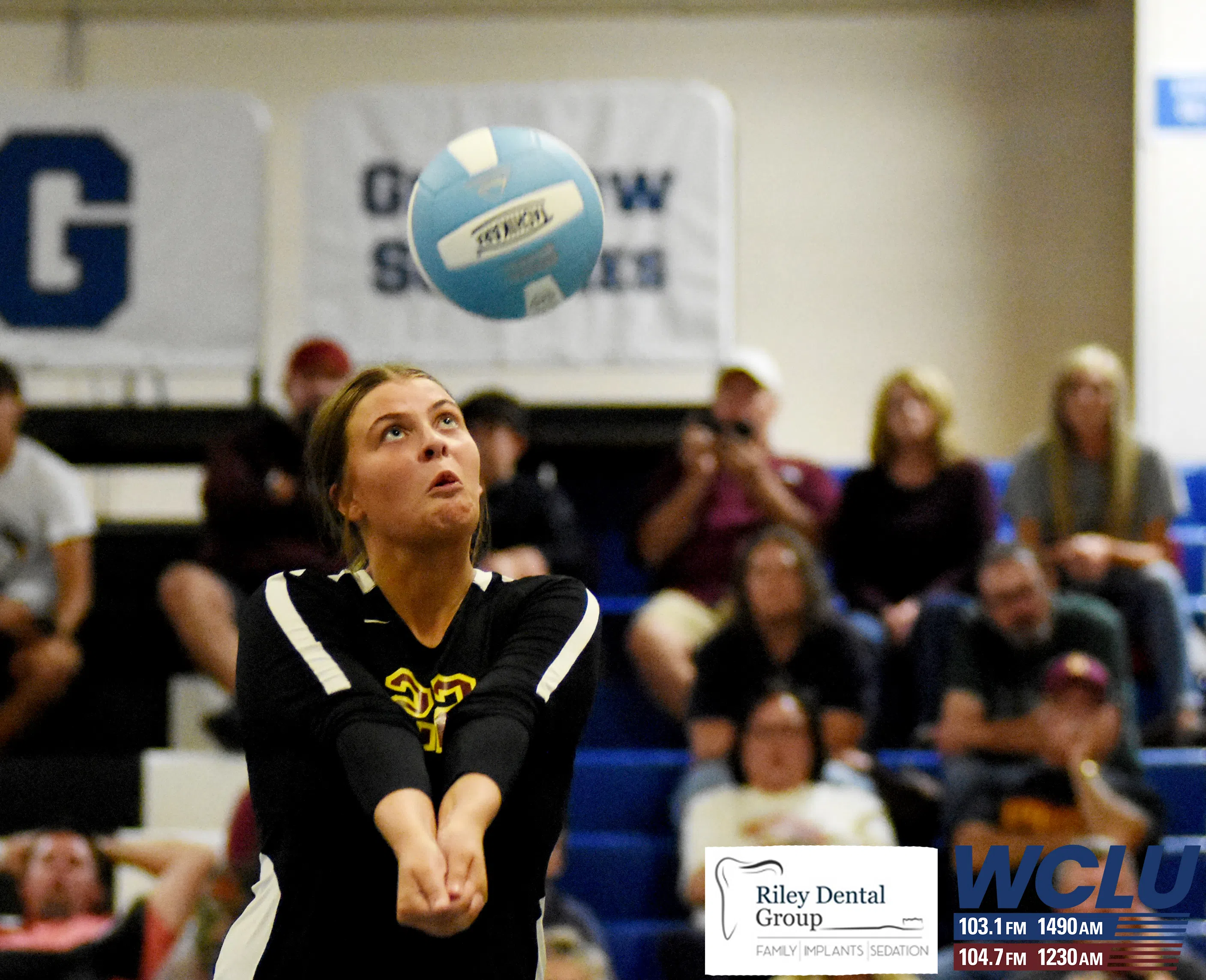 Glasgow’s Audra Austin receives a serve against Barren County. The Trojanettes beat the Lady Scotties, 3-2. James Brown/WCLU Sports