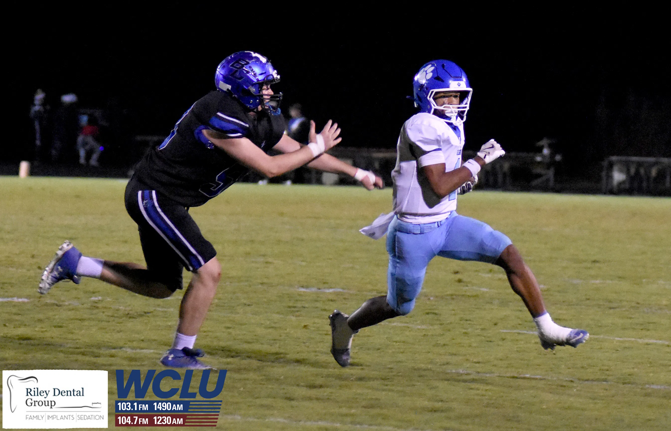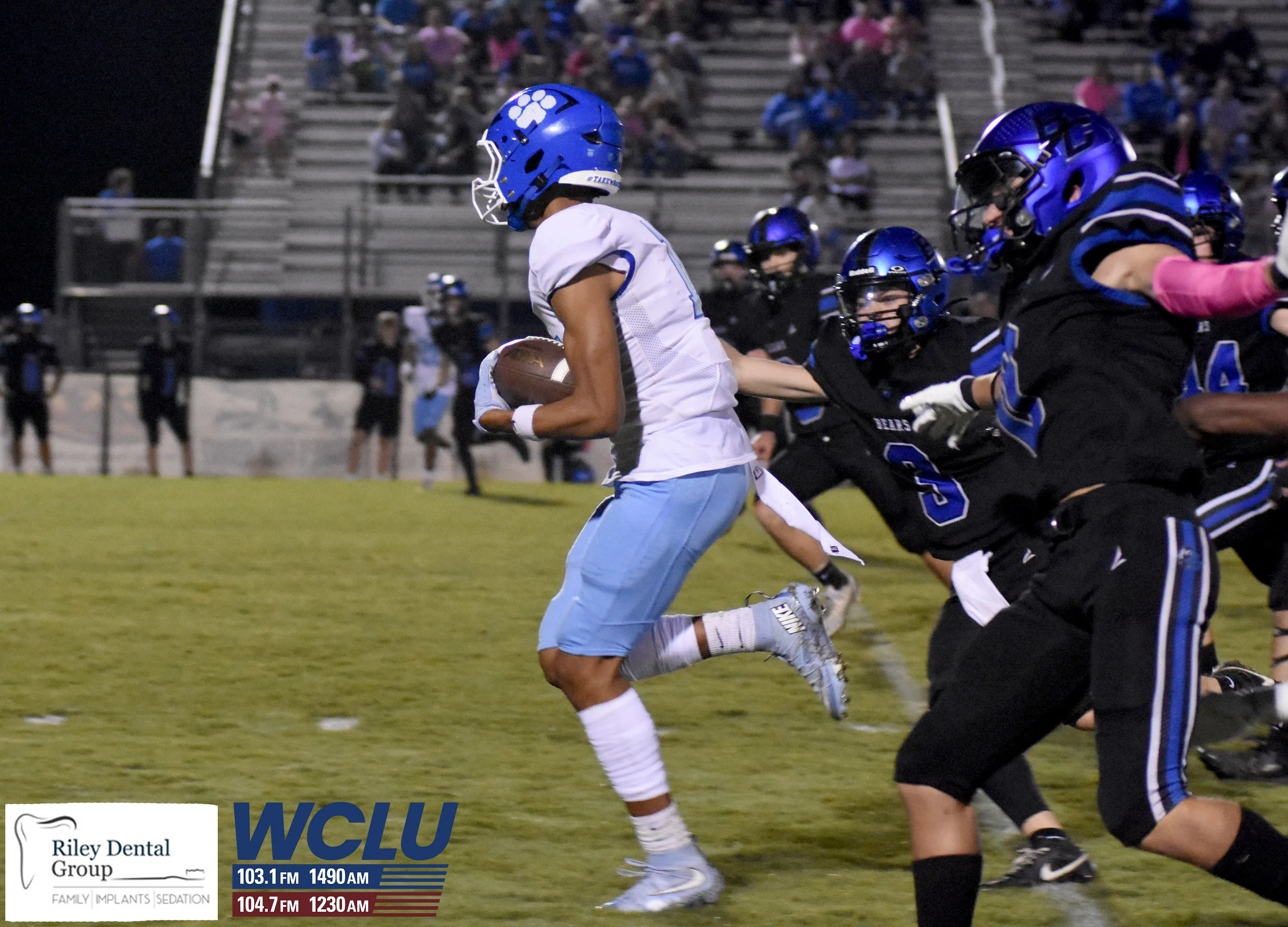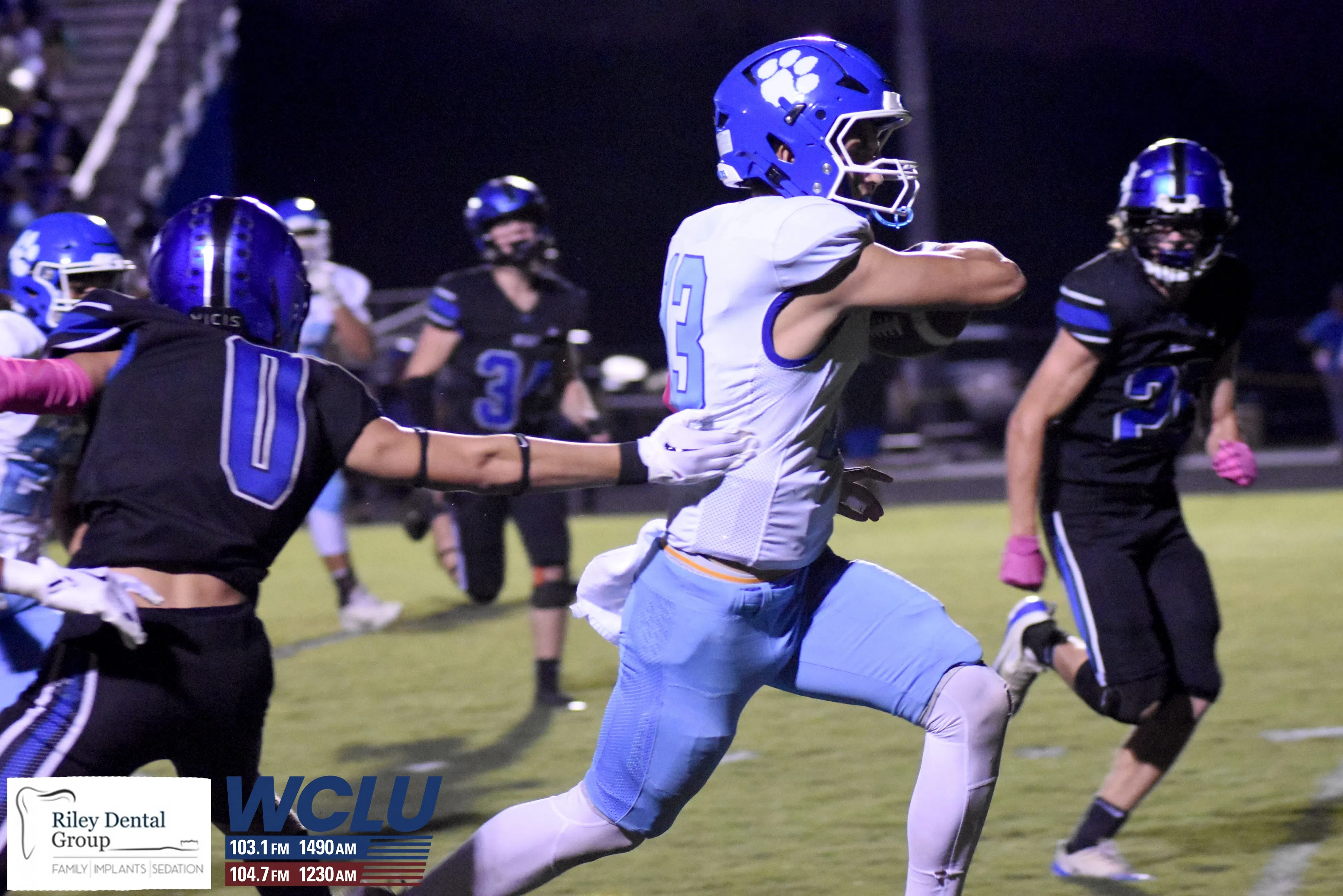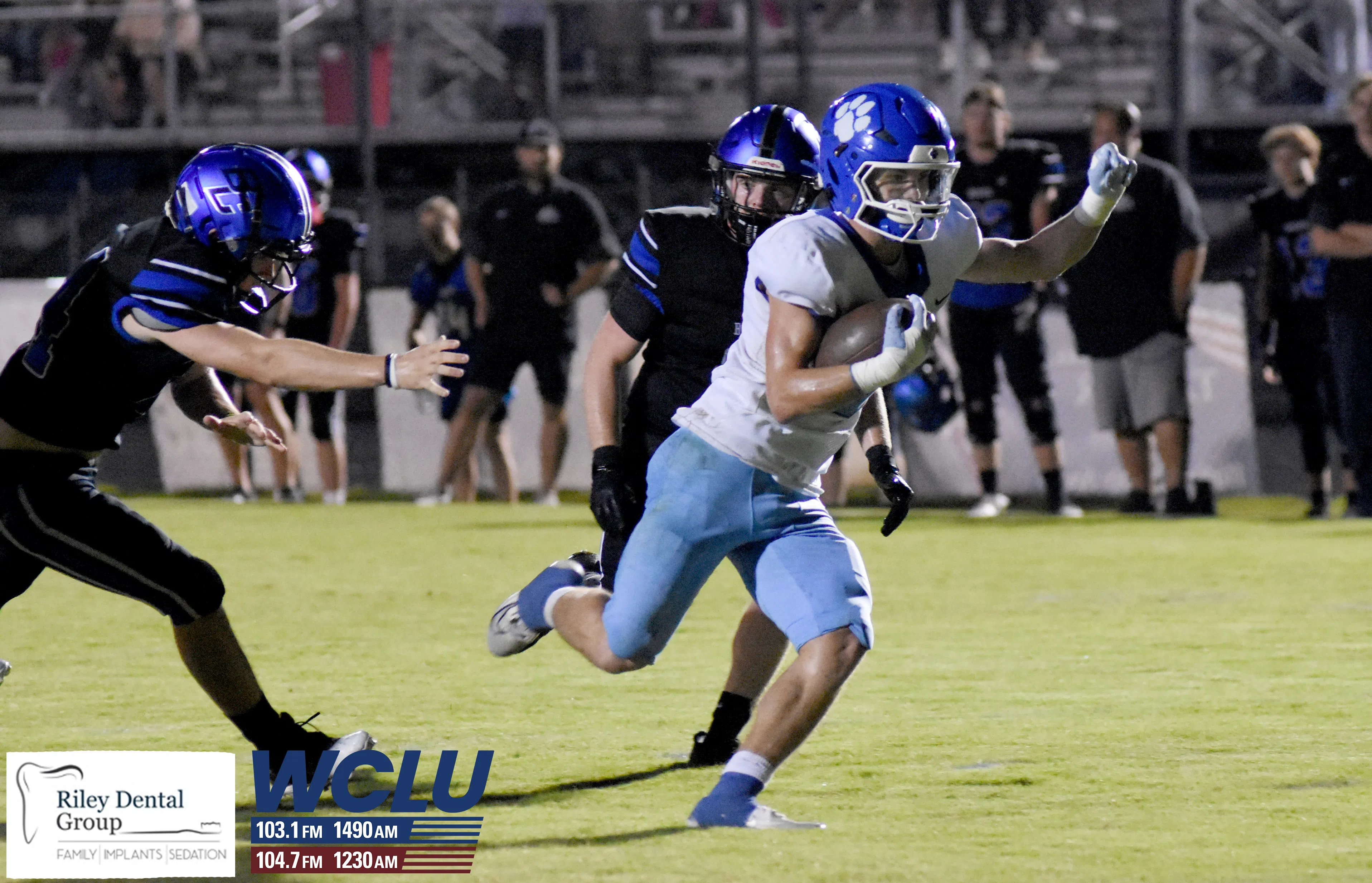 Glasgow’s Grayson Bartley returns an interception for a touchdown against Butler County. The Scotties won, 64-12. James Brown/WCLU Sports