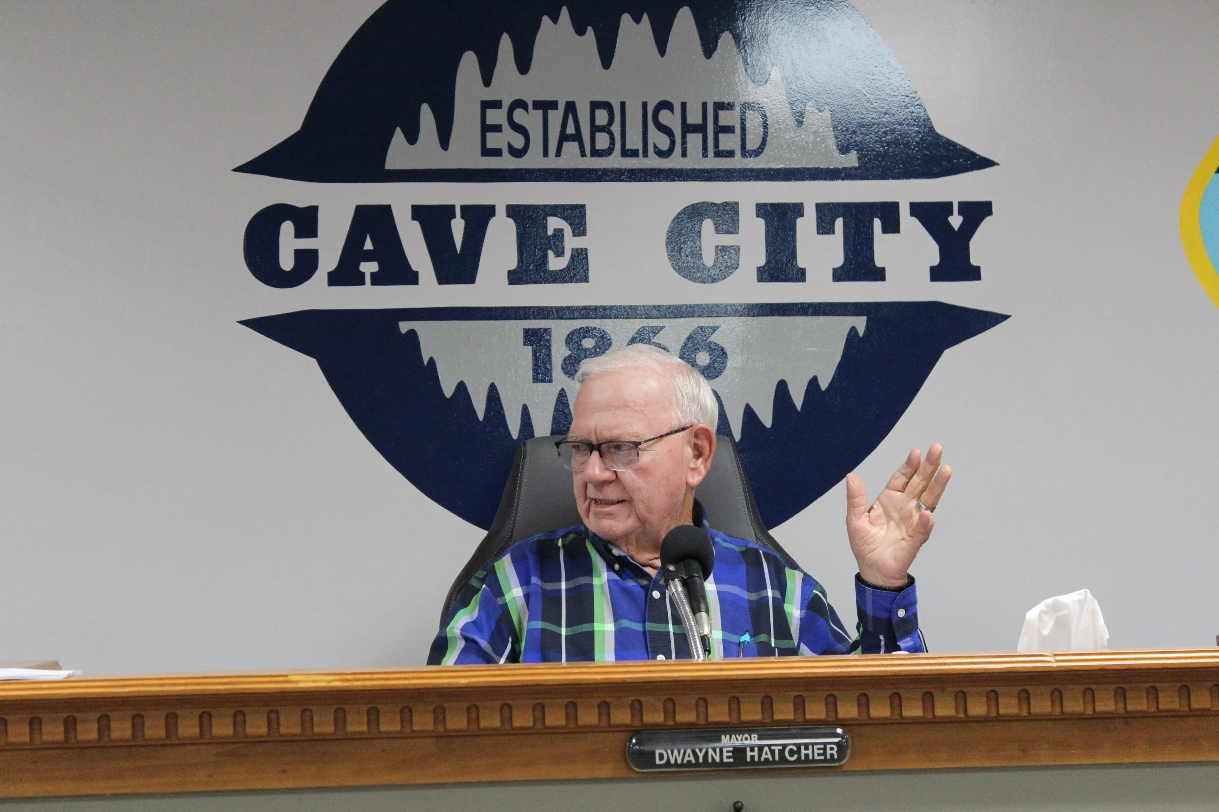 Cave City Mayor Dwayne Hatcher made special mention of the two council members absent, Beverly Ford and Leticia Cline. Both have had recent health concerns resulting in their absence. Gage Wilson/for Glasgow News 1