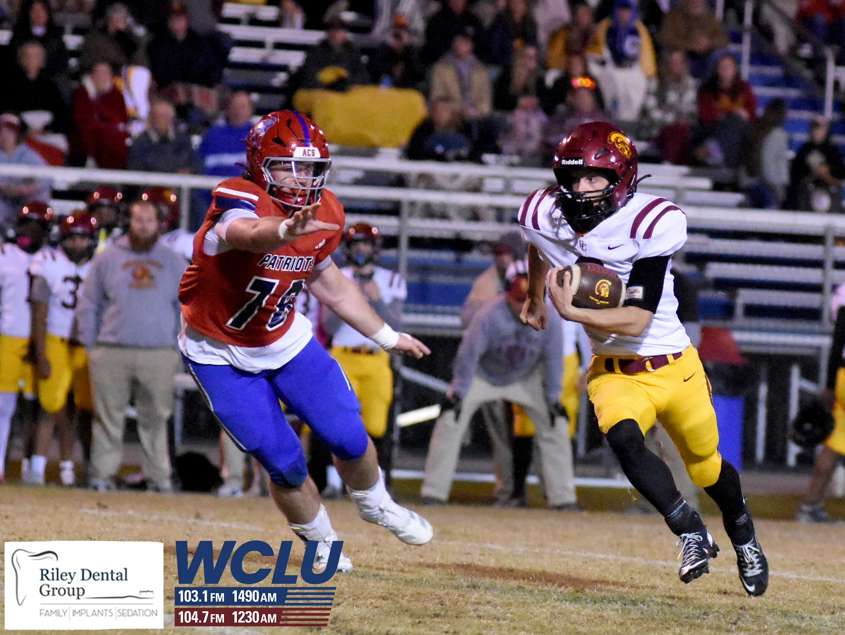 Barren County’s Steele Whitaker pursues the quarterback against Allen County-Scottsville. The Trojans won, 40-0. James Brown/WCLU Sports