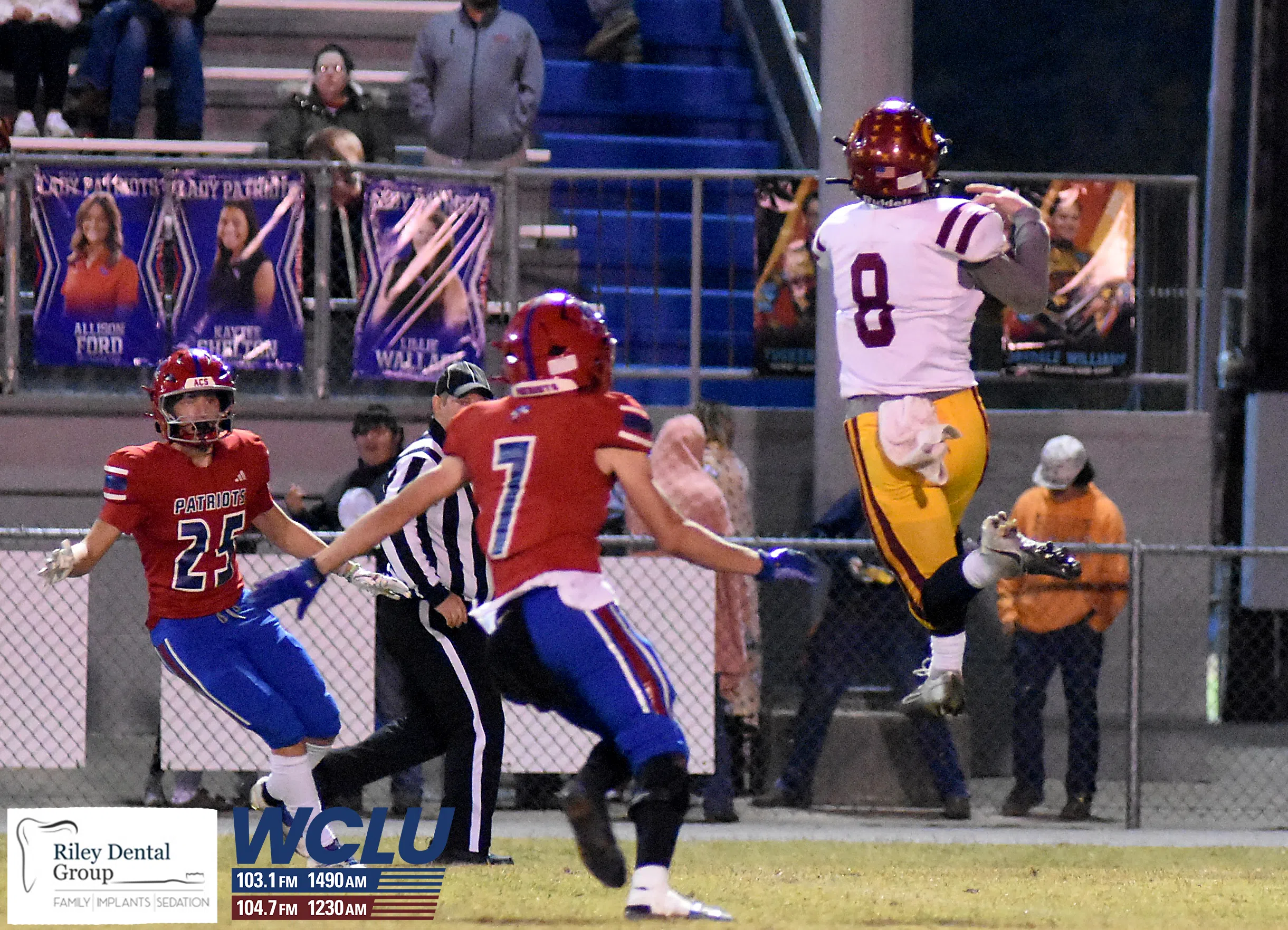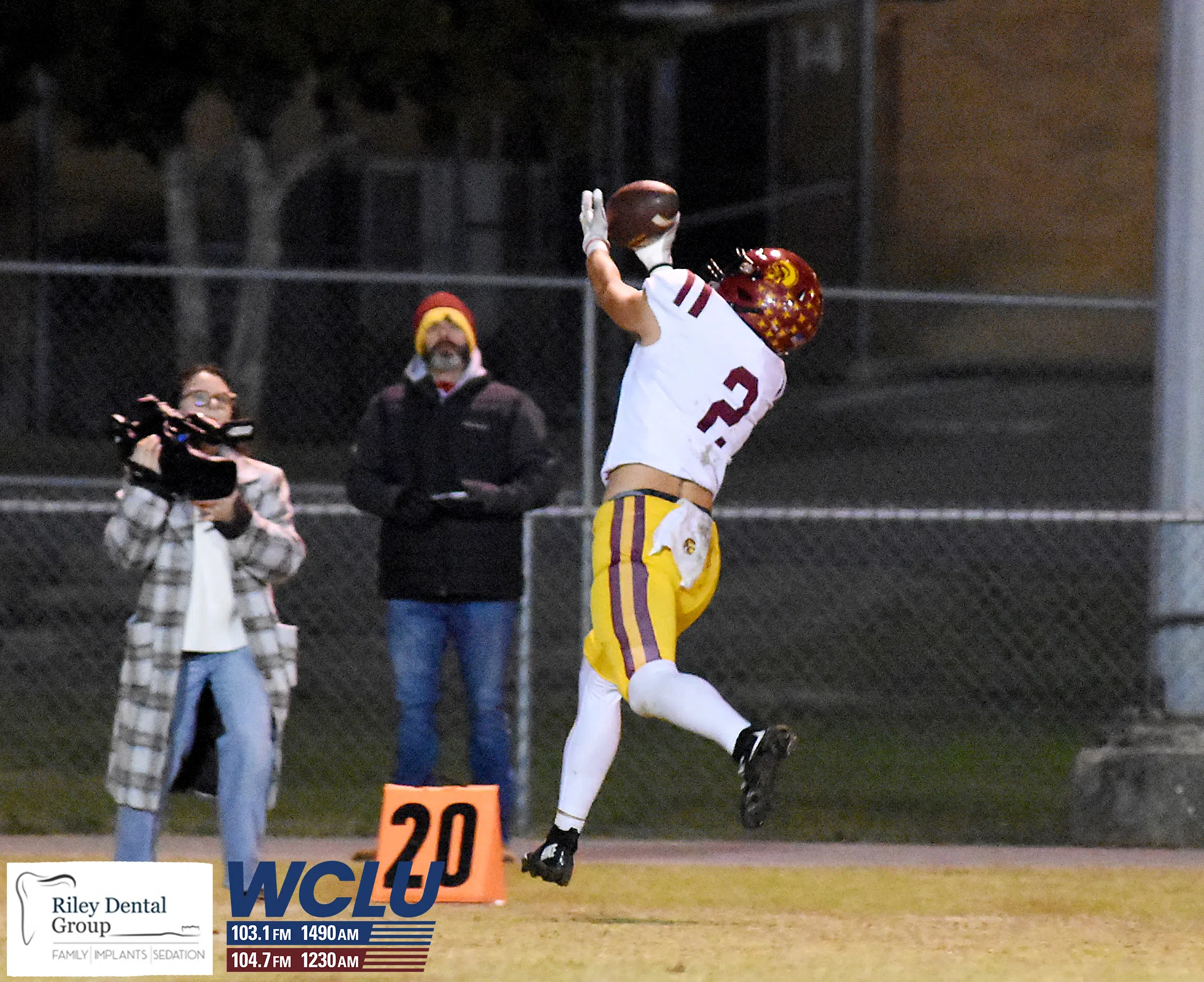 Barren County’s Jaxson Byrd catches a pass against Allen County-Scottsville. The Trojans won, 40-0. James Brown/WCLU Sports