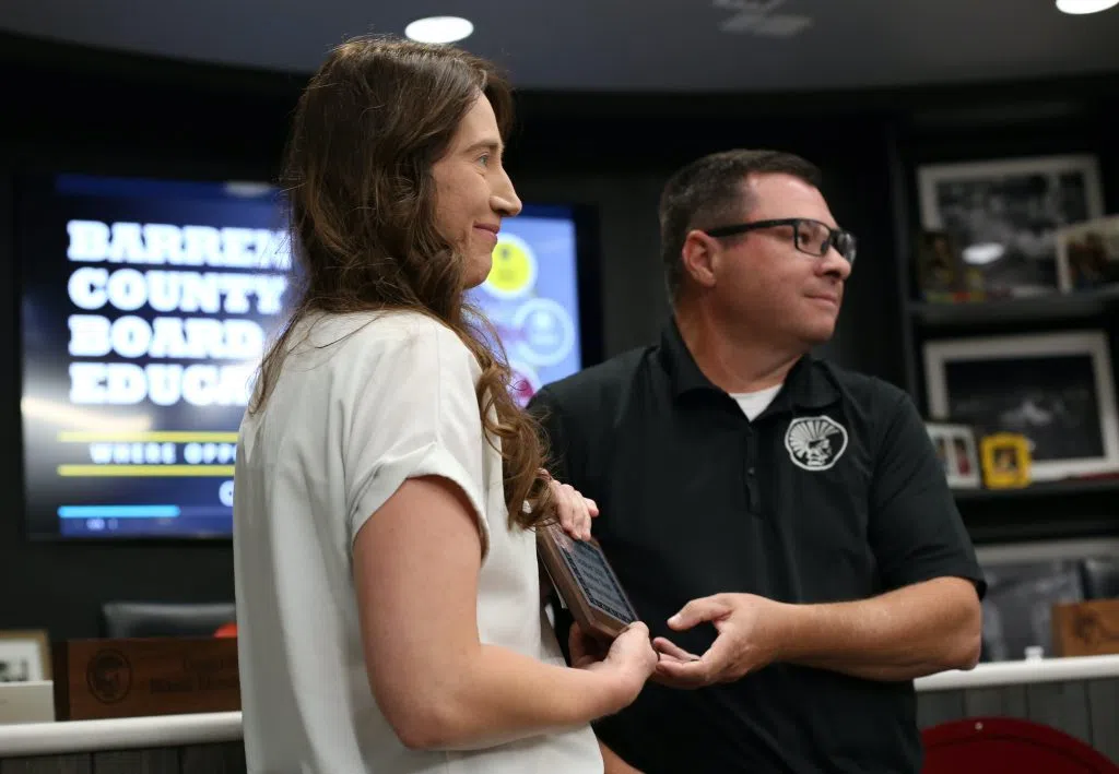 Hiseville Elementary’s Tamara Murrey was recognized as the Certified Employee of the Month at the Barren County Schools Board of Education regular meeting on Oct. 16, 2025. Will Perkins/Glasgow News 1