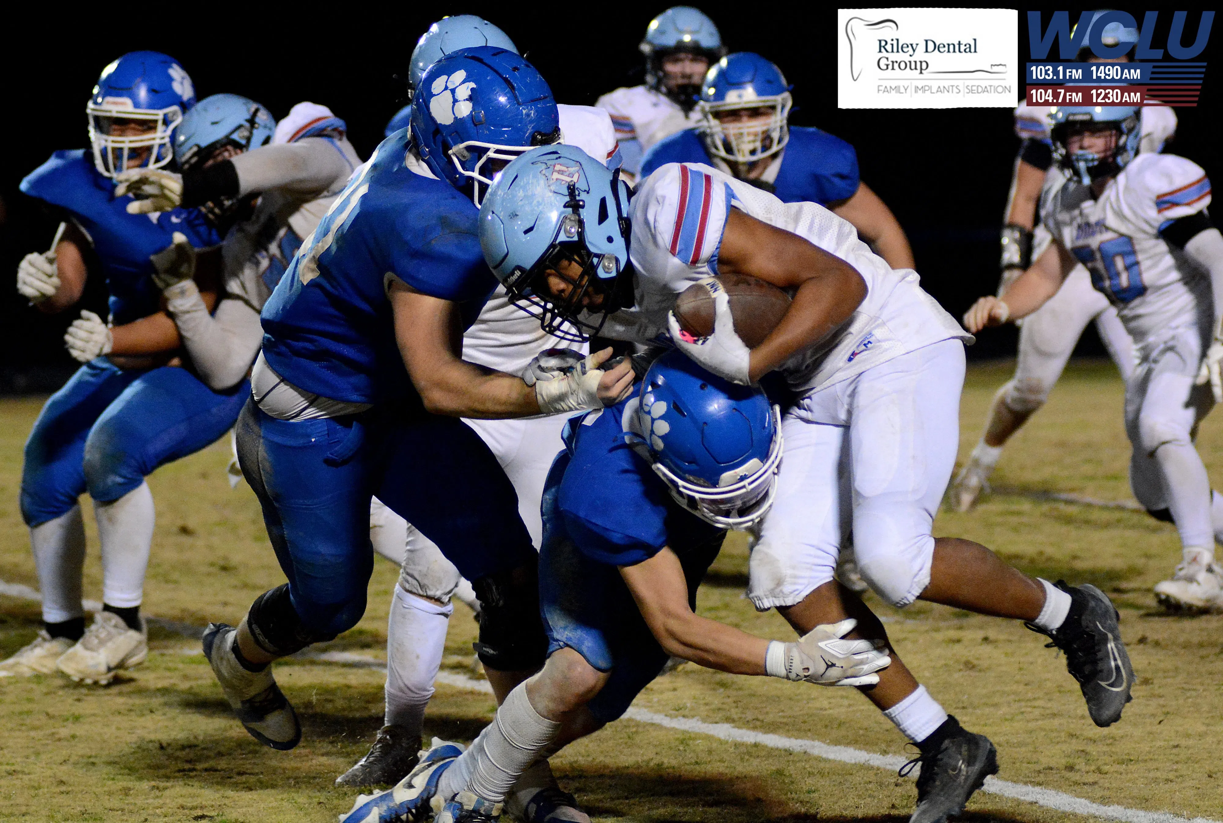 Glasgow’s Jerrick Martin, Grayson Bartley and Trace Smith combine for a tackle against Union County in the second round of the Class 3A Playoffs. The Scotties lost, 10-7. Auggie Brown/WCLU Sports