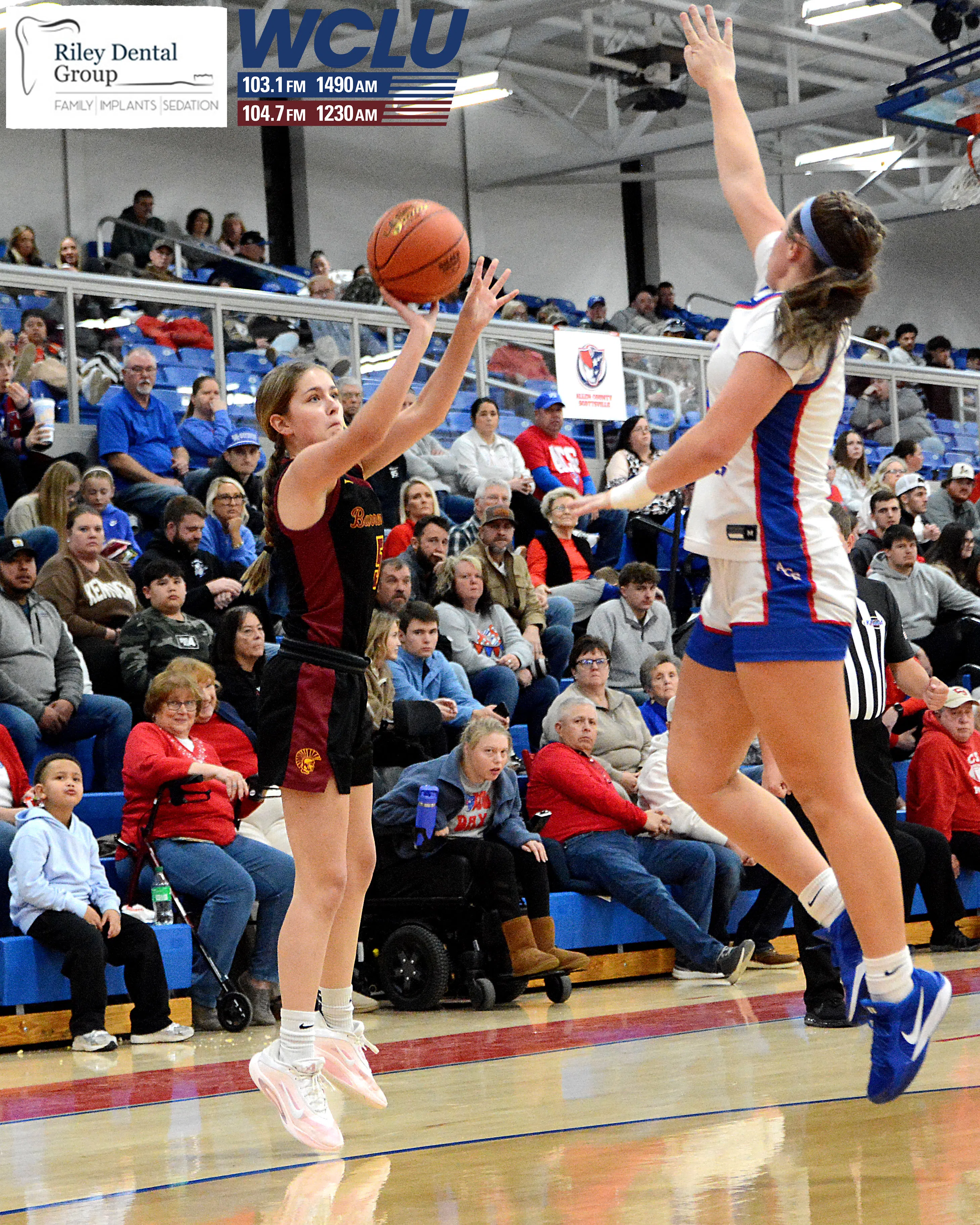 Barren County’s Hannah Wilson shoots a 3-pointer against Allen County-Scottsville. The Trojanettes won, 75-45. Auggie Brown/WCLU Sports