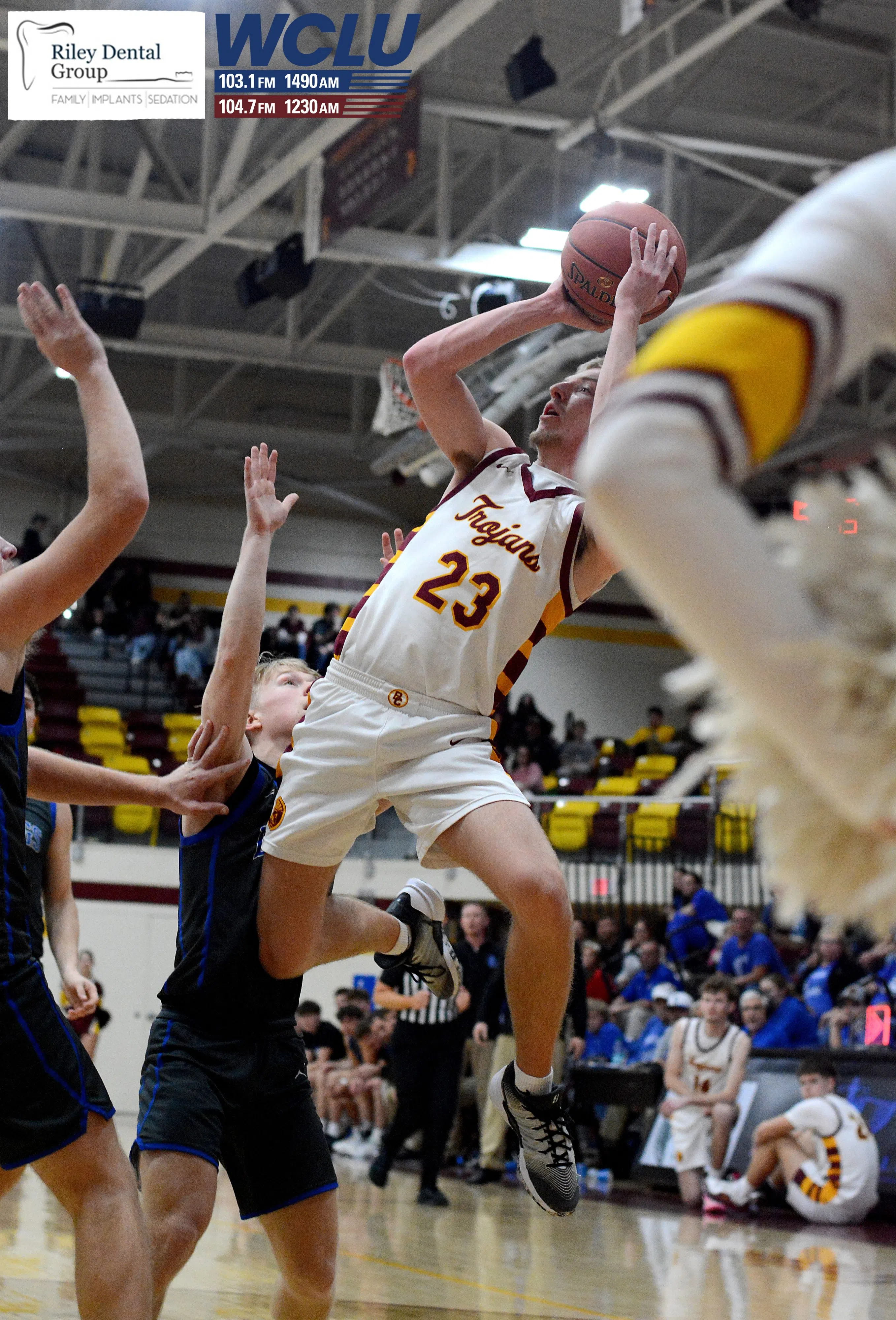 Barren County’s Weston Shelton shoots a layup against Clinton County. The Trojans lost, 59-49. Auggie Brown/WCLU Sports