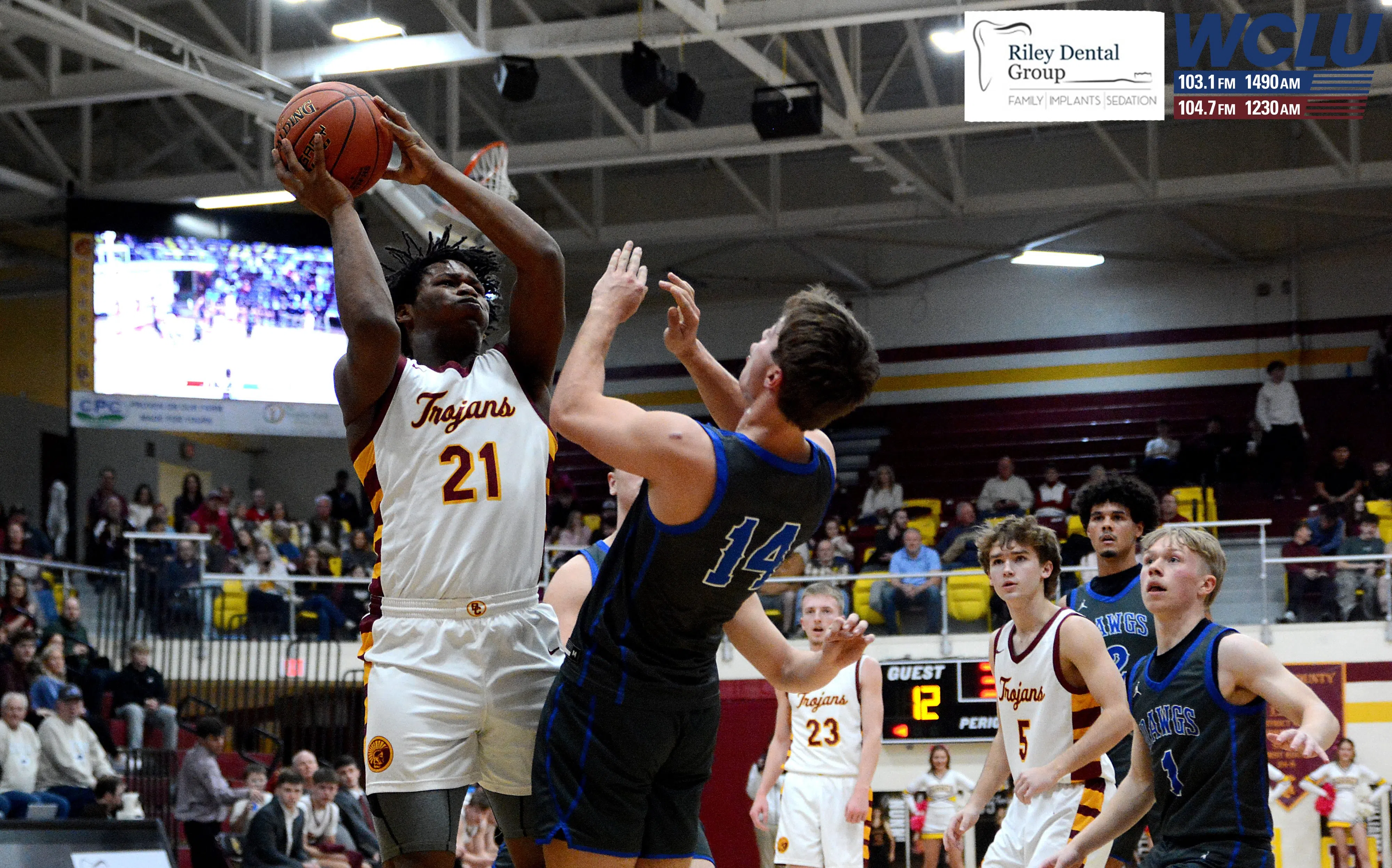 Barren County’s Gavin Nunn battles for a rebound against Clinton County. The Trojans lost, 59-49. Auggie Brown/WCLU Sports