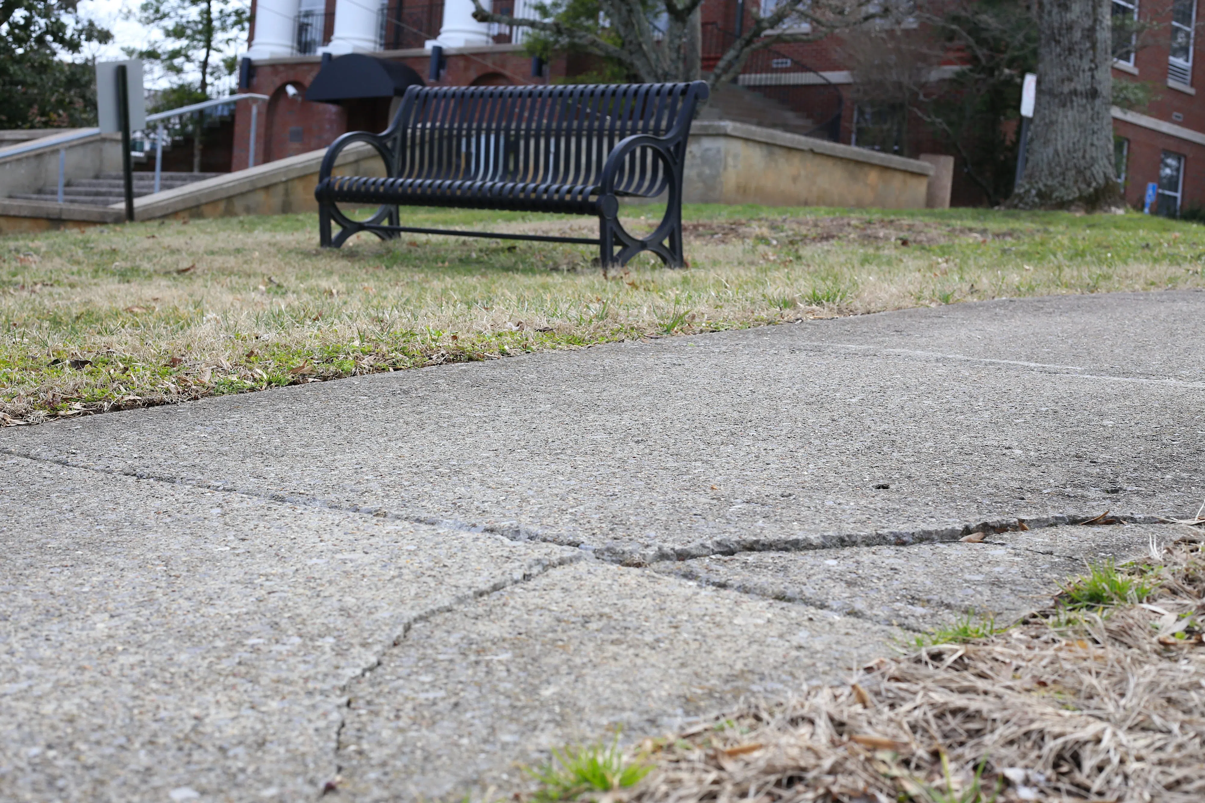 Cracks in the sidewalk surrounding the Barren County Courthouse in downtown Glasgow are pictured on Feb. 17, 2026. Will Perkins/Glasgow News 1